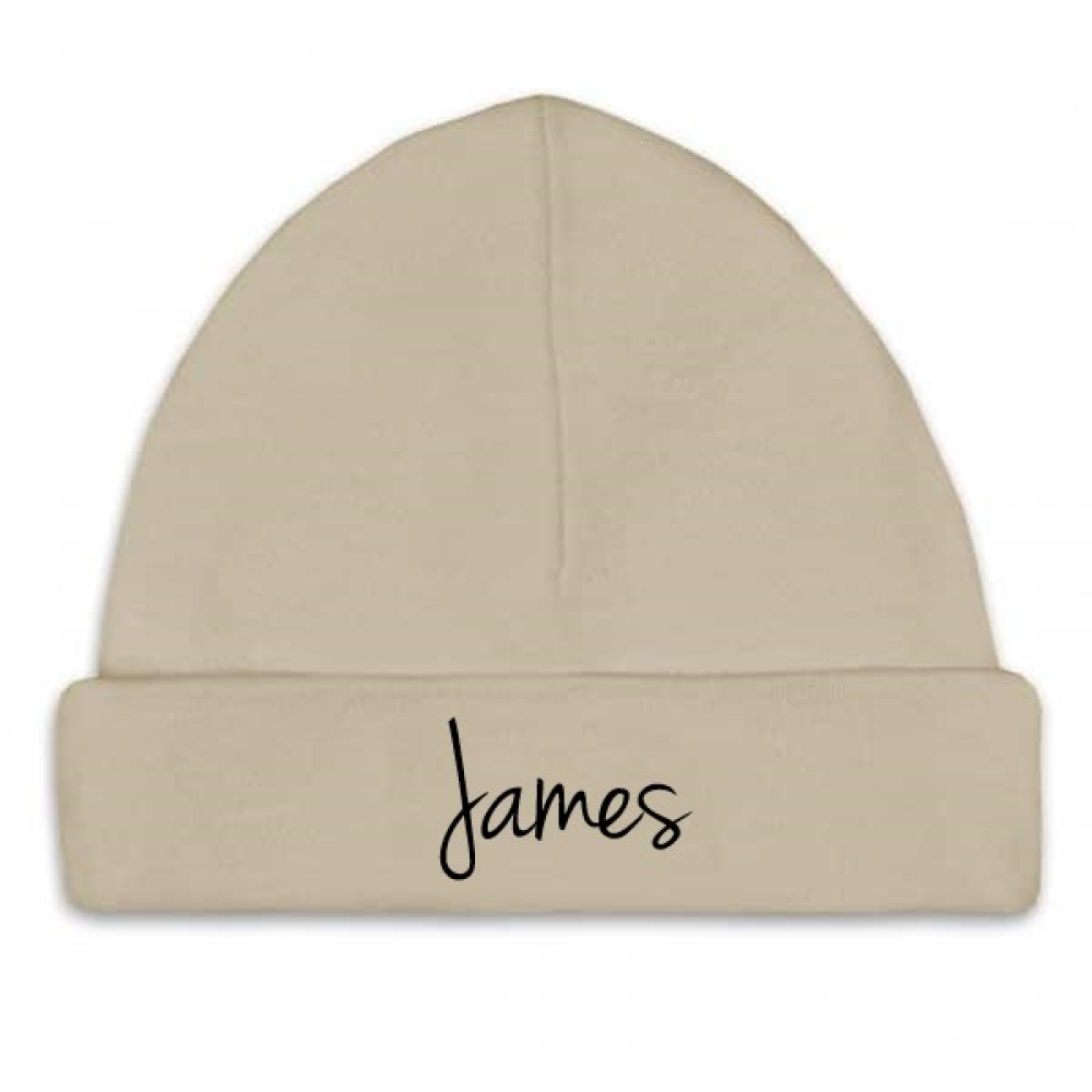 Funnies Zachte babymutsje van 100% Katoen in de mooie cream kleur met een hand geschreven lettertype