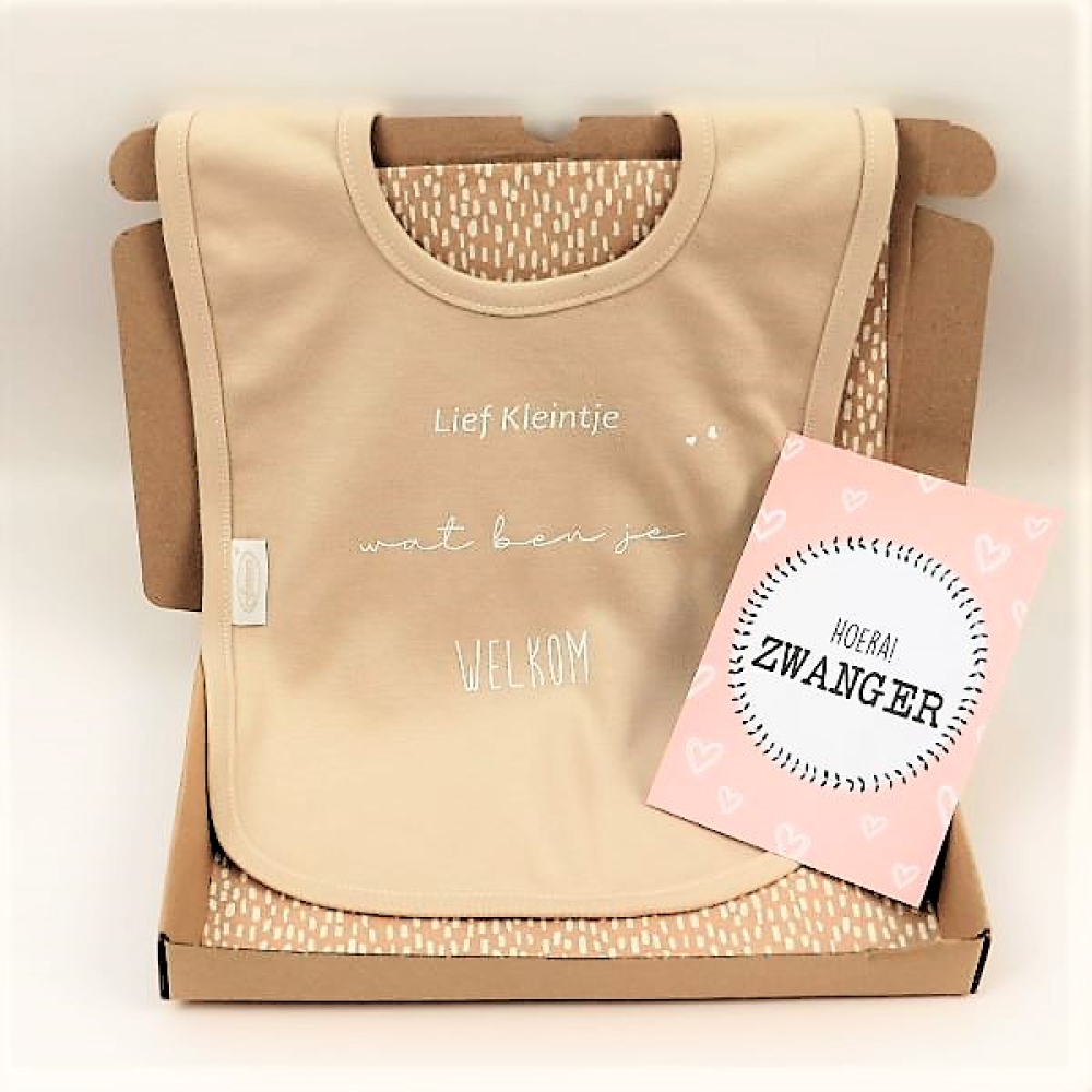 100% Katoen slabber kleur sand lief kleintje wat ben je welkom en kaart Zwanger