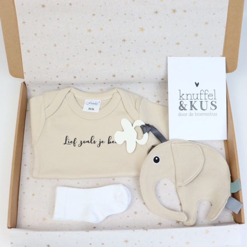- Speen/knuffel Olifant Naturel, vooral handig om de speen niet kwijt te raken.
