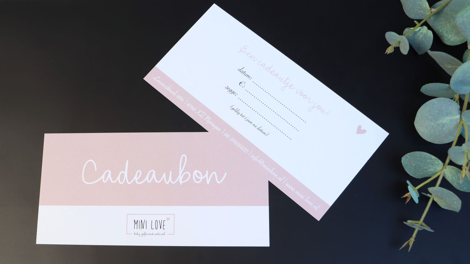Geef het ideale cadeau voor elke babyshower of als welkom voor een pasgeboren baby met onze cadeaubon van Mini Love Baby, Gifts and Naturel