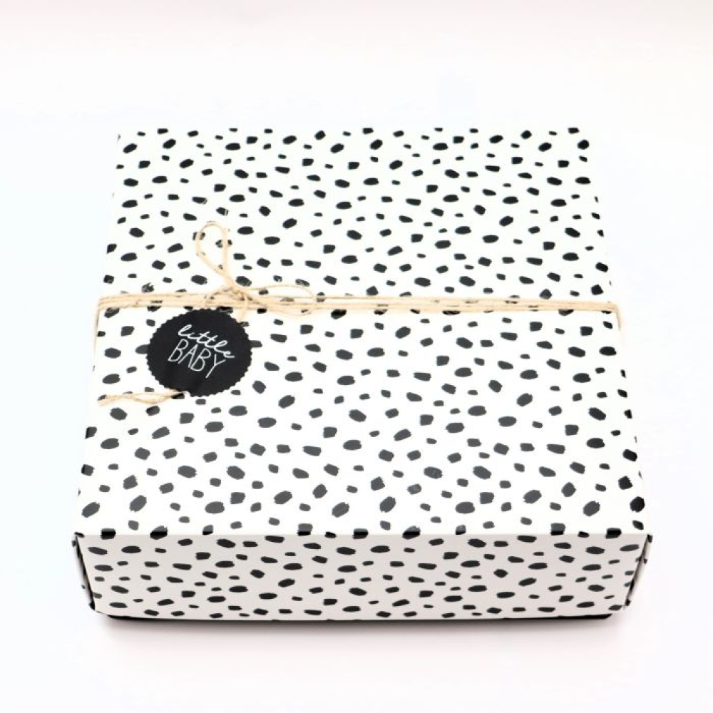 - Mooie stevige cadeaubox met zwart/ witte dots.