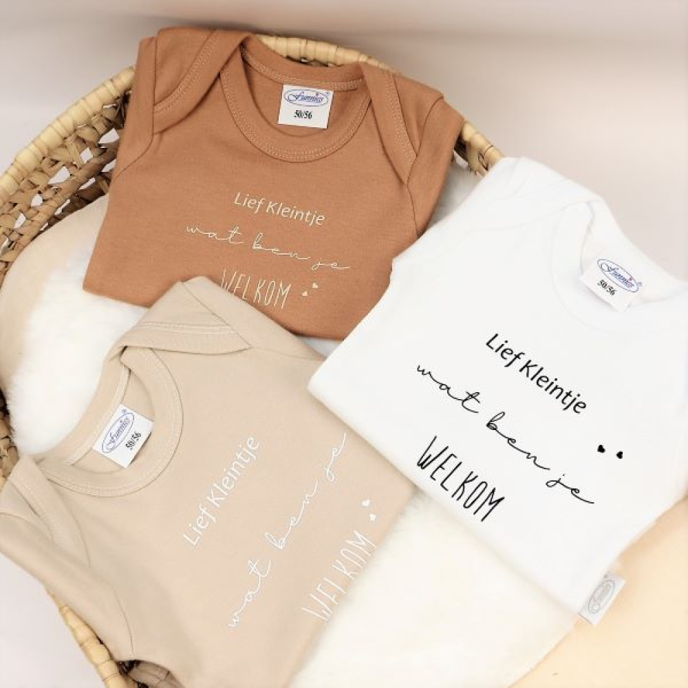 - Romper en babymutsje cream lief kleintje wat ben je welkom Maat 50/56 0-3 maanden