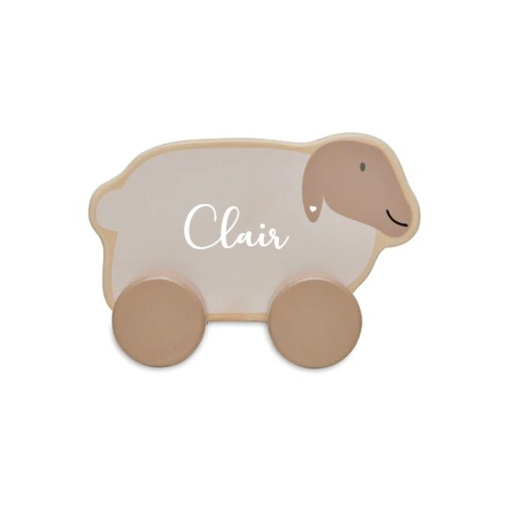 Vroeeeem! Speelplezier gegarandeerd met dit lieve lammetje op wieltjes.