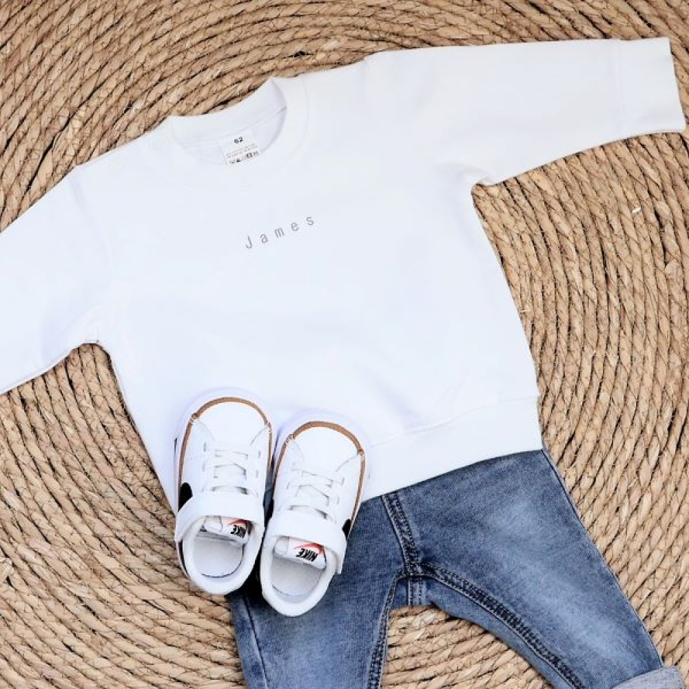Stoere Sweater wit met een subtiele grijze opdruk James